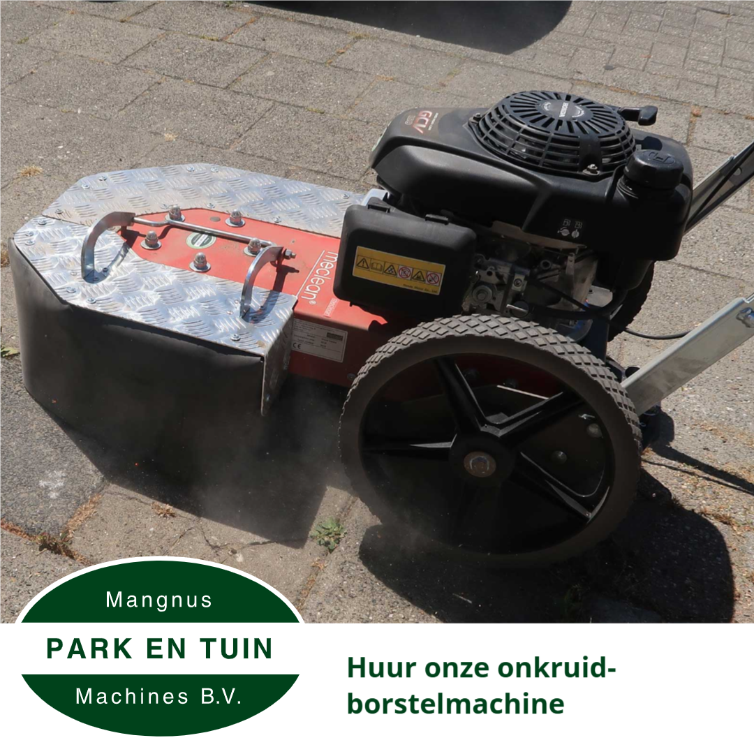 Huur nu de krachtige Meclean onkruidborstelmachine bij Mangnus park en tuinmachines en maak je terras, oprit of bestrating gemakkelijk en snel onkruidvrij.